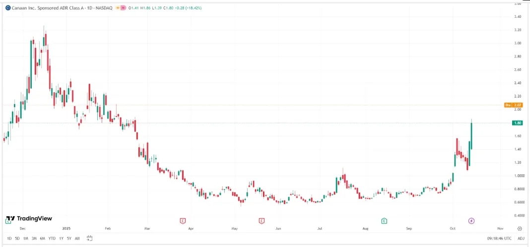 Canaan Inc. (NASDAQ: CAN) has shown a recent resurgence above $1 after trading below for several months. Compared to other Bitcoin mining companies, many of whom achieved triple-digit gains this year, Canaan’s stock may appear undervalued, especially when considering its recent partnerships and increased self-mining operations.