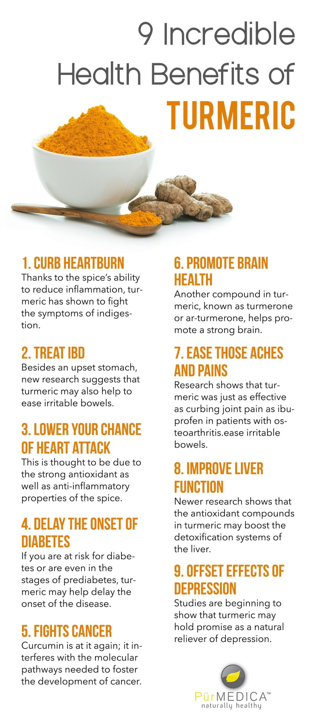 Curcumin Benefits Curcumin, the main component of turmeric, may lower the risk of chronic diseases such as cancer and heart disease.