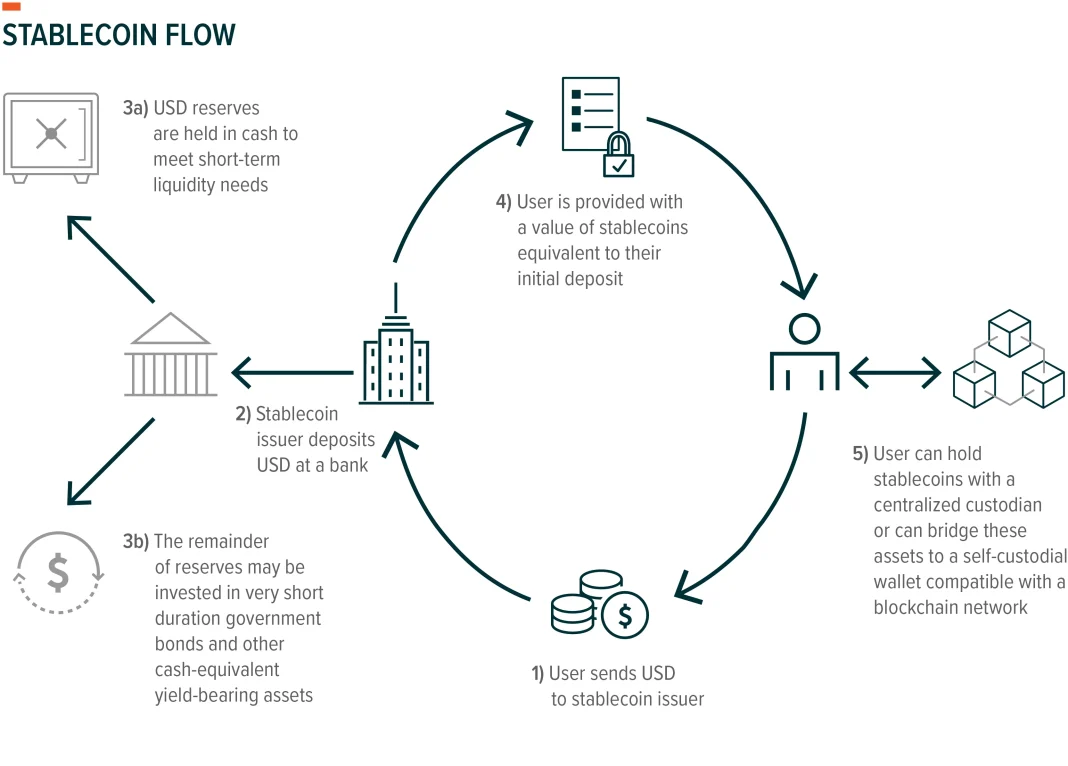 The firm frames stablecoins as a conduit between traditional finance and Web3 and describes them as evolving into a settlement layer for global commerce.