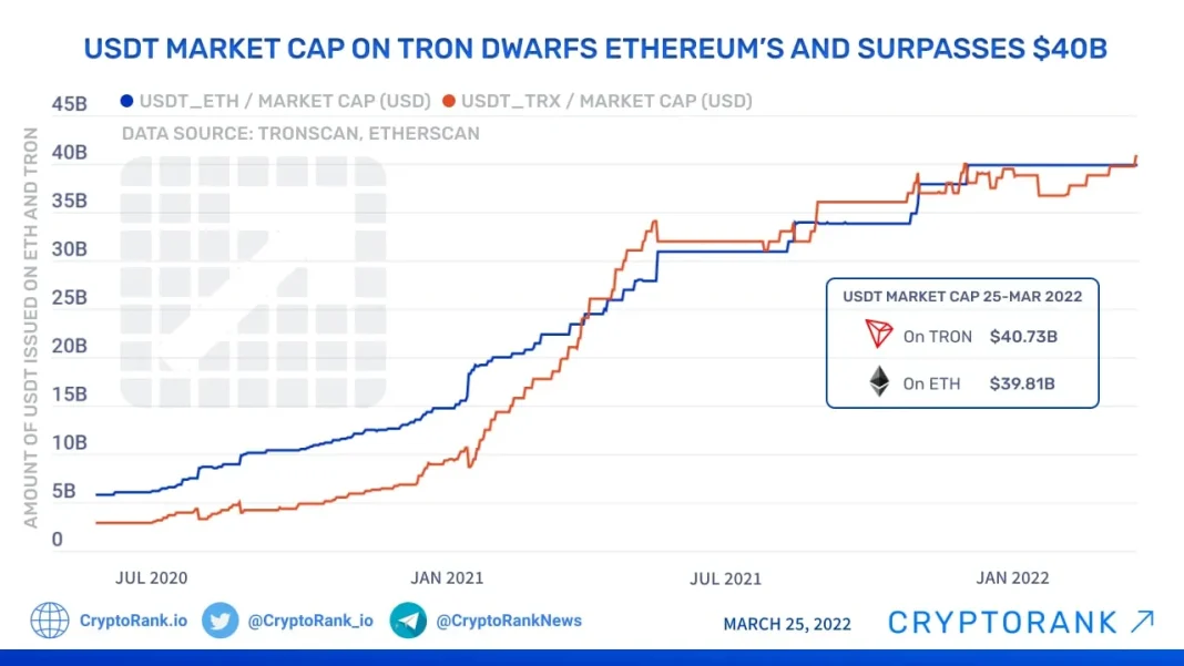 In 2025, Ethereum regained the top position for USDT issuance, overtaking Tron.